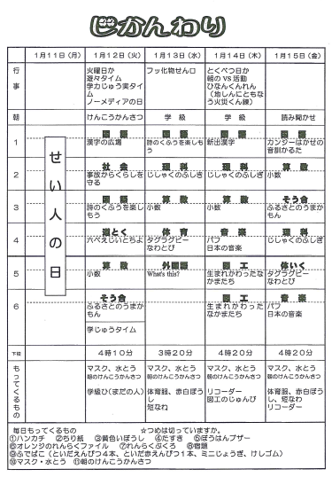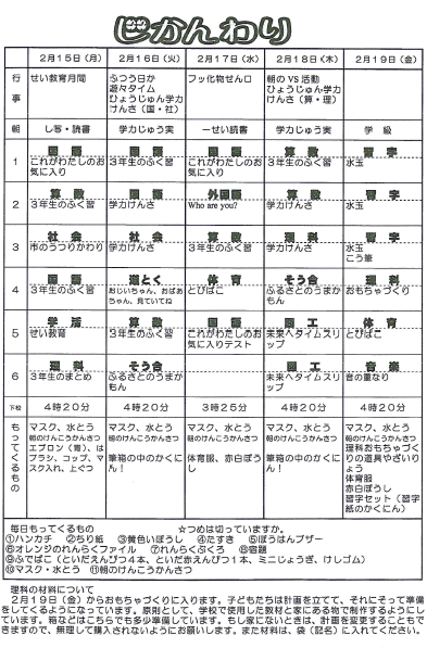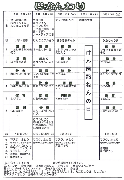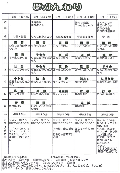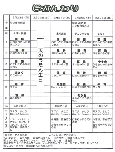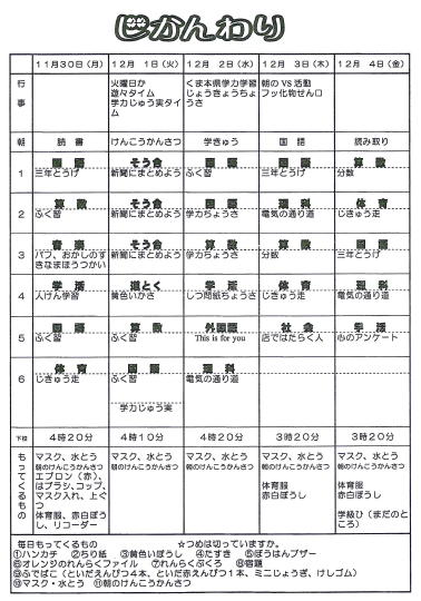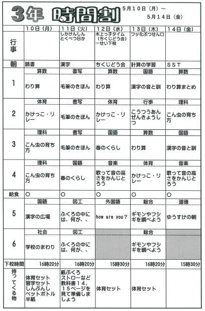 3年 時間割