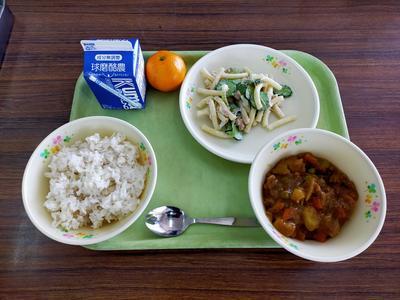 11月27日(金)チキンカレー、マカロニサラダ、ミカン