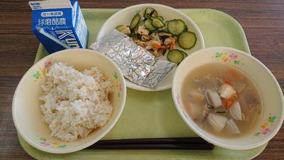 麦ご飯、さばのホイル焼き、ごしきなます、のっぺい汁