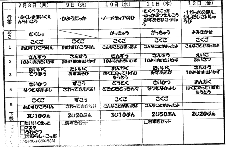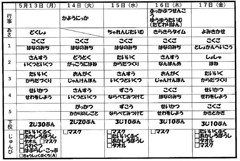 1年 時間割