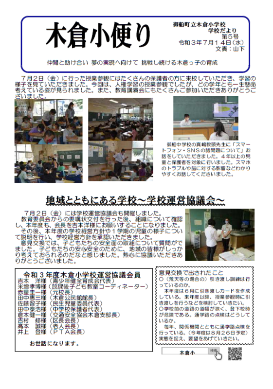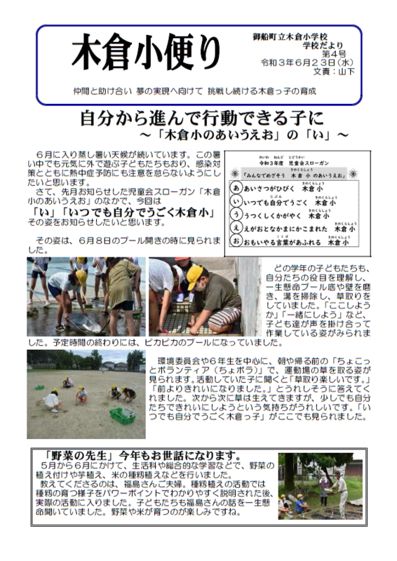 学校便り 第4号 投稿日時 : 2021/09/29 学校サイト管理者 学校便り 第4号 「自ら進んで行動できる子に~「木倉小のあいうえお」の「い」~」 R3 学校だより(第4号).pdf 0 {{options.likeCount}} {{options.likeCount}} {{options.unlikeCount}} {{options.unlikeCount}}