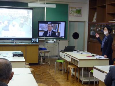 また、初めての試みとして、当日来校できなかった会長には、Zoomを活用したオンラインでの参加により、協議の進行役を務めていただきました。