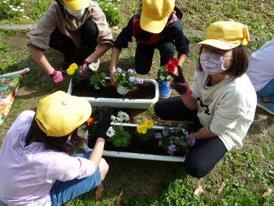 今日(3月11日)は、青少年健全育成会議木倉支部から花の苗をたくさんいただきました。早速、卒業式の会場に飾るために、5年生がプランターに移植しました。