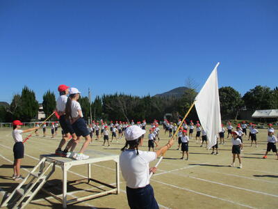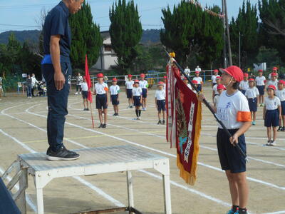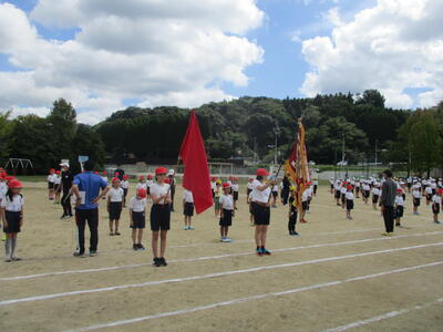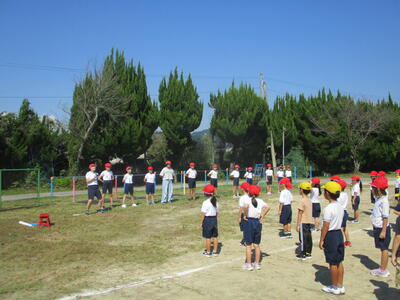 9月30日(金)、秋晴れの木倉小運動場で運動会赤白両団の結団式が元気いっぱいに行われました。