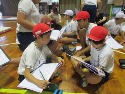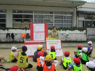 その後は、徒走やリレーなど、自分のコースを確認したり、招集、出発、決勝、準備、などの係の仕事を確認したりしていきました。責任をもち、きびきびと動く高学年の子どもたちはとても頼もしいです