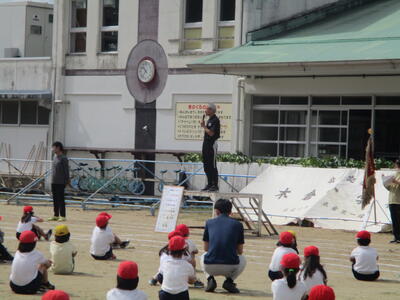 コロナ禍でなかなかできなかった縦割り班での運動遊びを再開しました。運動遊びの場は、運動場に「遊具王」「じんとりゲーム」「タグとりおに」の3つの場、体育館に「ボンバーゲーム」「リバーシ」の2つの場、合わせて5つの場を準備し、縦割り班の6年生がリードして運動を楽しみました。高学年の子ども達は、中、低学年の子ども達に運動遊びのやり方やルールを一所懸命に説明している姿、笑顔いっぱいに運動を楽しんでいる中、低学年の子ども達の姿がありました。