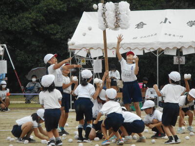 ゴールをめざし最後まで走りきる徒走、バトンゾーンをうまく使ったリレーは観客の心を熱くしました。玉入れの途中にダンスを取り入れたかわいい低学年の玉入れ。会場には笑顔がいっぱいでした。この続きは次号で紹介します。