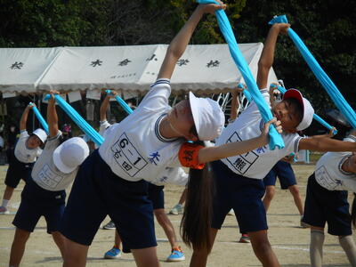 他にも6年生の家族の絆がみえる「ファミリーリレー」や「紅白対抗全員リレー」、そして最後のプログラムの「タオルストレッチ」と、あっという間の運動会でした。