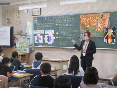 木倉小は今、人権旬間です。各学級で人権学習の授業が行われています。今日は2年生で「このままだまっていていいのか」の人権学習の3時間目がありました。