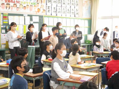 中、高学年からは英語専科の先生が入られて、担任の先生と一緒に英語を学習します。