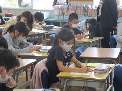 今回は授業参観に合わせて学校運営協議会を開催しており、委員の皆様が授業参観をする際には保護者の皆様も多数参観されていました。授業参観でもあり、子ども達はいつにも増して張り切って学習に望んでいました。