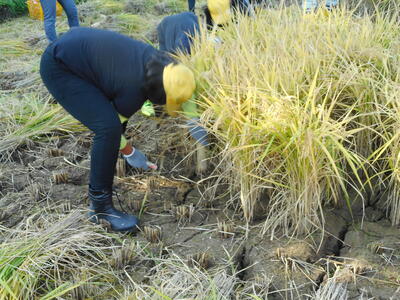 11月5日(土)に5年生の学級レクレーションで稲刈りが親子で行われました。