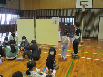 今日の5時間目、2年生はわくわくして1年生の来るのを体育館で今か今かと待っていました。今日は生活科で、2年生が1年生を招待して、自分たちが考えて作った遊びゾーンで一緒に遊ぶ日です。