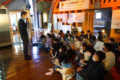 稲作学習では地域の福島さんをGTとして1年間お呼びして、籾巻き体験から苗床作り、田植え、稲刈り、もちの配付等、約半年以上にわたって学んできました。水俣病学習・環境学習では、5月の集団宿泊教室の際に「水俣に学ぶ肥後っ子教室」を県立環境センター、水俣病資料館等で行い、語り部さんの講話を聞くなど、学習してきました。