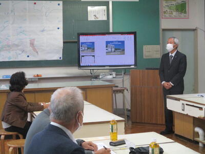 令和4年度の入学式から、集団宿泊教室、修学旅行、各学年と地域の方々との交流、運動会、持久走大会、そして30年以上にわたり体育の研究を続けてきており、本年度も研究発表会を行ったことなど、写真等をもとに紹介しました。