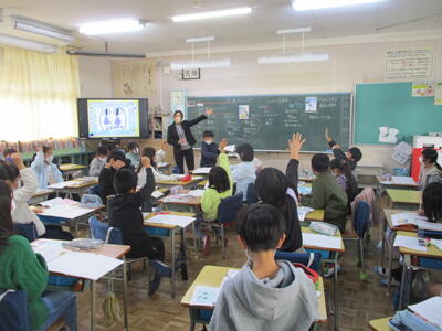 その学習の発展として本日、熊本県御船保健所衛生環境課の江藤葉月先生をお招きして薬物乱用防止教室を行いました。木倉小では毎年、この時期の6年生に対して行っています。