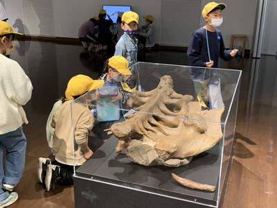 秋晴れの中、「行ってきまーす」の元気な声ではりきって出発しました。行き先は「恐竜博物館」と「御船町ふれあい広場」です。恐竜博物館では迫力満点の恐竜を見学したり、様々な展示物を見学したりしました。また、体験プログラムでは、紙粘土でアンモナイトをつくり、色とりどりの自分だけのアンモナイトをつくりました。