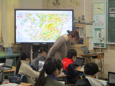 この日の6年生の教室では新しい日本づくりを熱い思いで進めている明治時代の学習が行われていました。授業始めのスイッチオンタイムでは前の時間に学習した条約改正のきっかけともなったノルマントン号事件や日本がトルコの船救出したエル・トゥールル号事件など電子教科書活用して楽しく復習しました。