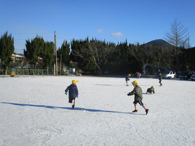 昨日のHPで紹介しました6年生を送る会の後は、近くの御船町民グランドまで全校児童で送別遠足に行きました。