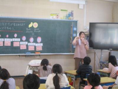 それでも4年生の子どもたちは英語専科の先生の明るく軽快な雰囲気の授業の中で楽しくワードやセンテンスを発音していました。