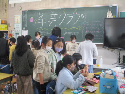 木倉小には「スポーツ」「ボードゲーム」「手芸」「マンガ・イラスト」「昔遊び」「カードゲーム」の6つのクラブがあり、4年生以上の全児童が希望するクラブで楽しく活動しています。