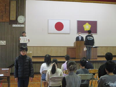 2月6日から約10日間の選挙活動を経て、この日リモートでいよいよ立合演説会でした。この10日間の間に、選挙ポスターをつくって掲示したり、給食の時間に順番で放送をしたりと一所懸命に自分たちの思いを伝えてきた子どもたちです。誰が当選しても誰が落選してもその思いや行動だけであっぱれです。その立候補者を支える推薦者の存在も大きいです。