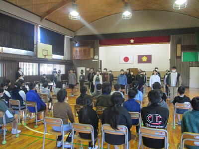 3月は別れのシーズンであり、お互いに感謝の心を伝え合うシーズンです。木倉小では3月8日に6年生を送る会を晴天の中、運動場で実施しました。