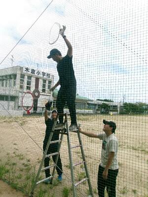 猛暑の中の8月下旬、児童の楽しむ顔を楽しみにしながら職員全員で校内遊具づくり及び修理をしました。