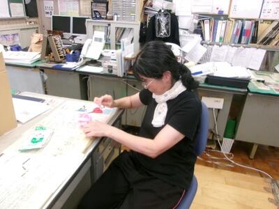 出来上がった作品を手に取り、「ボランティアの皆さんのおかげで、楽しくミシンが学べました。きれいに出来上がってうれしいです」と笑顔で感想を述べていました。