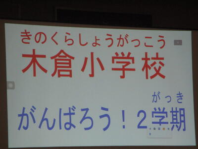 木倉小学校の3学期がスタートしました。子どもたちの元気な声が響き、学校の活気が帰ってきました。この日は感染症予防のため、子ども達の体調を考慮し始業式をZOOMで行いました。校長先生から、3学期にがんばることを「きのくらっ子の素敵な姿」として具体的に話していただきました。学校生活について前田先生から「誰が見ていなくてもする 本物の木倉っ子」を目指そう。引地先生からは「か・は・は」 をキーワードに、健康な生活を送ろうなどの話がありました。