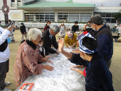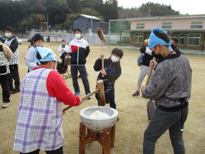 本校PTA主催「きのくら感謝デー(もちつき)」の様子です。5年生が総合的な学習の時間で育てたもち米を使いました。前々日の準備段階から当日まで、きのくら感謝デー実行委員(PTA役員)を中心に、充実したPTA行事を行うことができました。参加した子ども達からは「初めてもちつきをした」「もちつき楽しかった」などの感想が聞かれました。