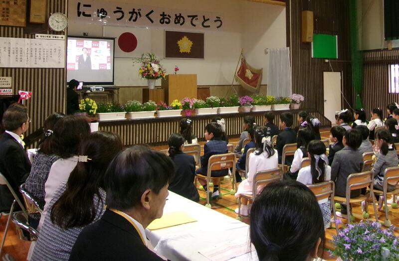 令和7年度の新入生は33名です。氏名点呼の返事を「はい」と元気な声で体育館いっぱいに響くようにできました。藤木町長様からのビデオメッセージやPTA会長からの来賓祝辞などをいただきました。また、ご来賓をお迎えして、温かな雰囲気に包まれた式となりました。入学式の後は、参列頂いた保護者の方と一緒に、教室や祝入学の大きな看板の前で、記念写真を撮るなど、新入生の笑顔が輝く入学式となりました。