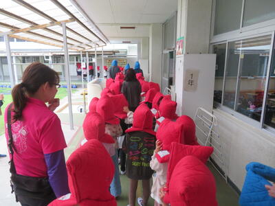 当日は雨模様でしたが、登校してきた子ども達の「おはようございます。」の元気な挨拶に、民生委員・児童委員の方々からは「雨の中 大変ね。」「朝から元気がいいね。」と優しい言葉を返していただき、笑顔が交差する微笑ましい様子が見られました。