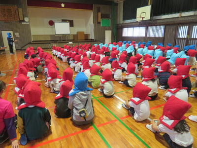 その後の学級活動では、各担任から学年の実情に応じた防災に関する指導が行われ、「自分たちの安全は、自分たちで守る」意識を再確認する機会となりました。