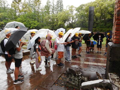 6月12日~13日の日程で、長崎・佐賀方面に修学旅行に行ってきました。梅雨空の中、みんな笑顔で出発しました。平和学習では、事前学習で学んだことを実際に見て、肌感覚で学習できる大切な時間でした。平和公園周辺をグループに分かれ、長崎さるくのガイドさんと一緒に如己堂、原爆落下中心地、浦上天主堂などを歩いてフィールドワークをしました。原爆資料館では、様々な展示品や資料をもとに戦争の悲惨さや平和の大切さを実感しました。被爆体験講話では、語り部の方から実際に聞く講話は心に響くものでした。佐賀の宇宙科学館では、体験型学習に目を輝かせて学ぶ姿がありました。