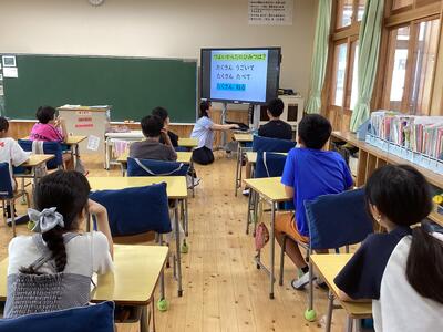 校長先生から「 ふるさと 夢 なかま」について話があり、子どもたちは、熱心に聞いていました。