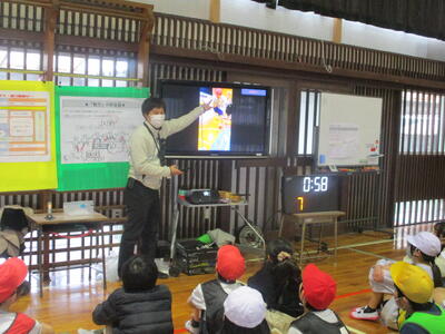 12月5日(月)の6校時に、地域の福味様が来校され、御船町の5人の先哲のひとりである「林田能寛さん」のことについて6年生に対して、紙芝居を使っての学習をしていただきました。