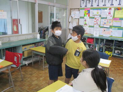 毎年、6年生を対象におこなっているおじいちゃん、おばあちゃんの絵画コンクールの表彰式を24日(木)の昼休みに校長室で行いました。