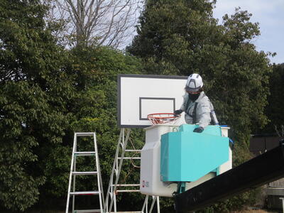 この日は、チェーンソーなどを使い、父親の皆さんでどんどん遊具を撤去していきました。遊具撤去の後は、樹木の伐採を20本以上していただきました。さらに、運動場の溝に溜まった砂の撤去もしていただきました。最後は、掘った穴などを丁寧に砂等で埋めて、子ども達にとって安全な運動場にしていただきました。本当にありがとうございました。