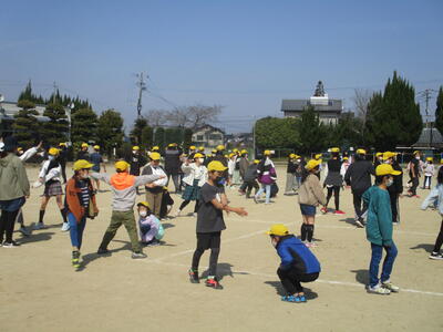 コロナ禍でなかなかできなかった縦割り班での運動遊びを再開しました。運動遊びの場は、運動場に「遊具王」「じんとりゲーム」「タグとりおに」の3つの場、体育館に「ボンバーゲーム」「リバーシ」の2つの場、合わせて5つの場を準備し、縦割り班の6年生がリードして運動を楽しみました。高学年の子ども達は、中、低学年の子ども達に運動遊びのやり方やルールを一所懸命に説明している姿、笑顔いっぱいに運動を楽しんでいる中、低学年の子ども達の姿がありました。