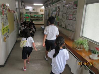 1年のスタートにあたり、安全に学校生活を送るための約束を確認しました。また、登校班の目標を決め、班員みんなで守る意識を高めました。