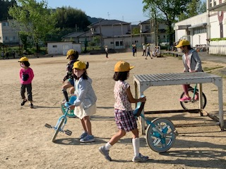 今日(4月21日)も、朝から3年生が一輪車の練習をしていました。 自分たちでコツコツ練習を重ね、今では補助が無くても乗れる子がたくさんいます。