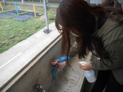 4月27日(火)より30日(金)まで新型コロナウイルス感染症拡大防止のため臨時休校となりました。本校では、職員の体温チェックや校内の消毒を毎日行っています。職員一丸となって安心して過ごせる学校作りに励んでいます。