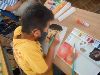 4年生の図工では、似顔絵の作成に取り組んでいます。