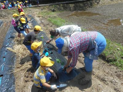 また、子どもたちは真剣な表情で、苗を丁寧に持ちながら取り組みました。