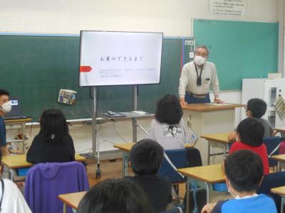 昨日(20日)、5年生は総合的な学習の時間に、ゲストティーチャーの福島さんにお越しいただきました。授業では、「お米のできるまで」というテーマのもと、もみ殻から収穫までのお米の育て方について詳しく教えていただきました。ありがとうございました。