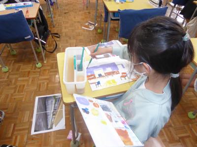 21日(金)、6年生は図工の時間に、木倉小のお気に入りの場所を描きました。