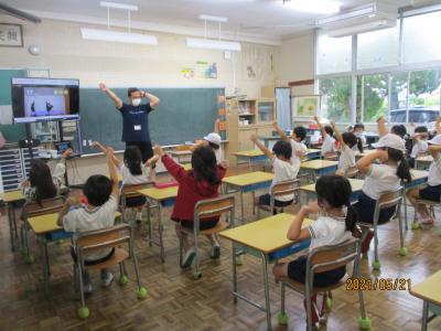 木倉小では30年以上にわたって、教科体育や体力づくりの研究を積み重ねています。その一環で、毎週金曜日に全校体育に取り組んでいます。全校体育と言えば、運動場や体育館に全校児童が集まって、一斉に行う光景をイメージするものですが、木倉小では新型コロナウイルス感染症感染拡大防止として、各教室で映像を見ながら行う運動も取り入れています。