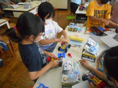 4年生は理科の時間に「電池のはたらき」の学習として、モーターカーの作成に取り組んでいました。