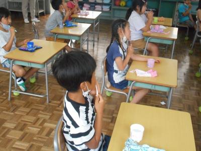子どもたちは、自分の歯の状態などを知ることでより一層歯磨きの大事さに気づき、真剣に担任や養護の先生のお話を聞いていました。
